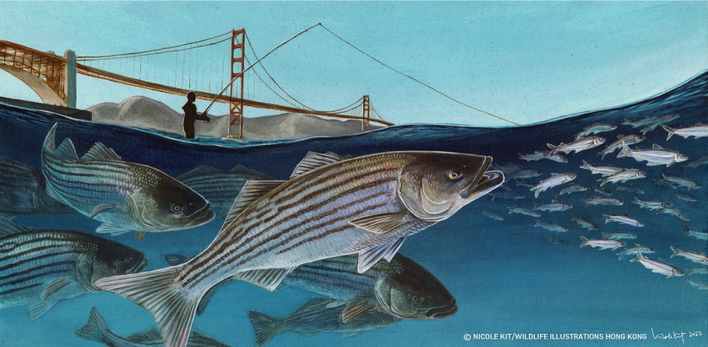 Striped bass (Morone saxatilis) and chinook salmon (Oncorhynchus tshawytscha).