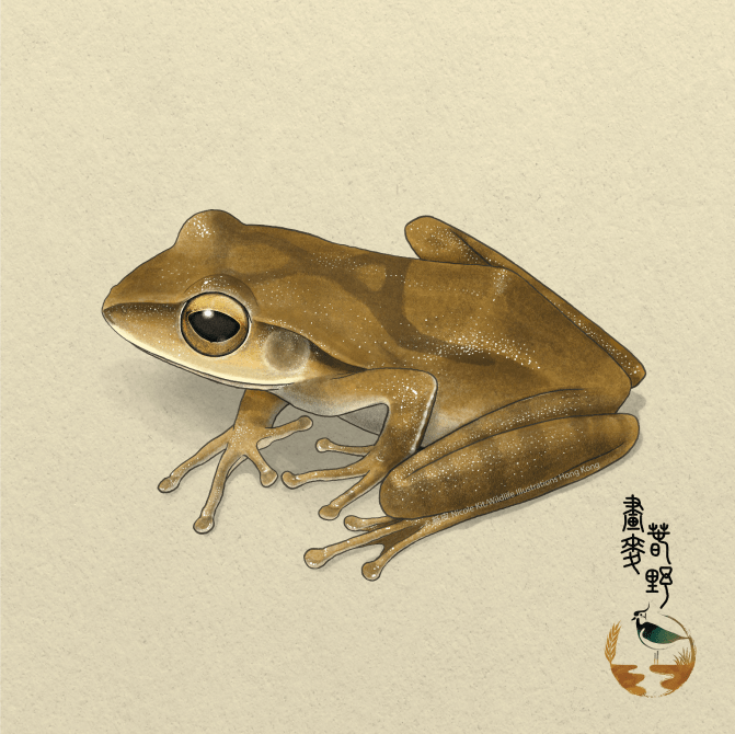 Brown tree frog (Polypedates megacephalus) Colour, Illustrated Amphibians of Hong Kong, Illustrations, Science illustrations