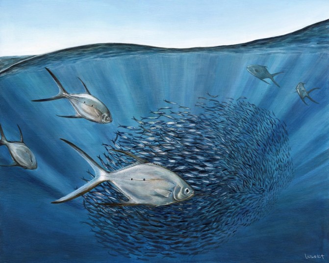 Striped Bass Hunting on Chinook Salmon Smolts under the Golden Gate Bridge